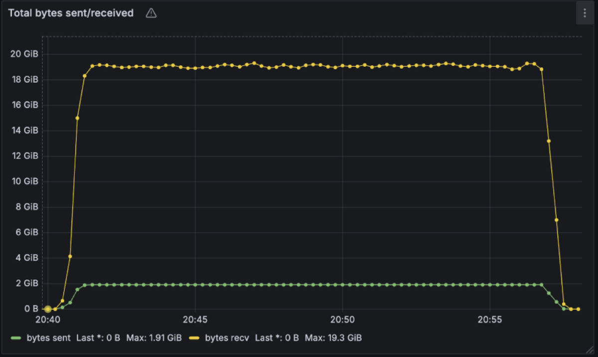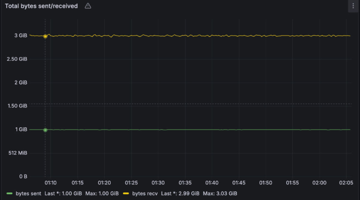 In this benchmark we extensively studied the coordinator traffic as it contributes to the cross-zones networking cost too. Given the 1GiB/s of ingress producer data, we have observed ~1MiB/s of metadata writes into PG and ~1.5MiB/s of queries traffic out. As the PG leader is placed on a single zone, ⅔ of that client traffic comes from brokers in other AZs. This translates to approximately 1.67MiB/s of cross-AZ traffic for metadata operations.