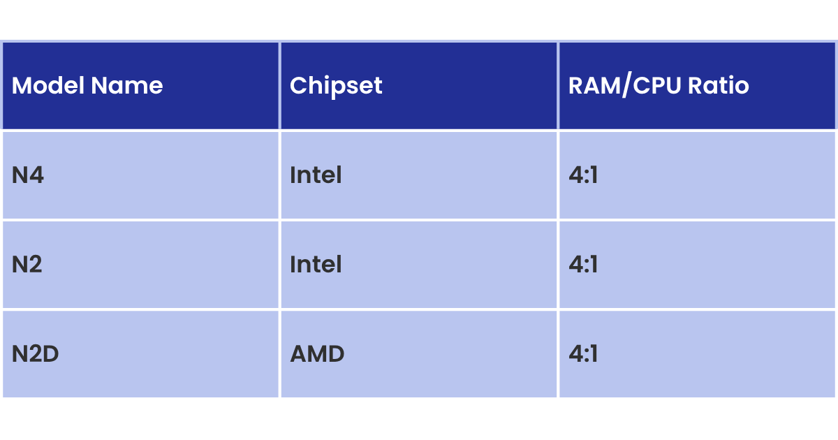 The GCP landscape was more nuanced, with less dramatic differences between families, especially N-series and C-series instances: