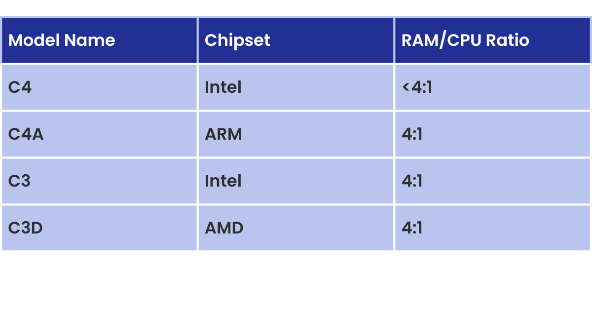 - Standardized Memory: Moving to standard memory configurations (4GB RAM/vCPU) for new N4/C4 instances provides a better CPU-to-RAM balance for most ClickHouse workloads, reducing costs by avoiding overspending for unused memory. For example, C3 instances with SSDs were, in some cases, slightly faster than C4/N4. However, the difference wasn't substantial, and C3 instances have small, fixed SSDs and inconsistent CPU numbers. This configuration does not align with the flexibility we aim to provide our customers.