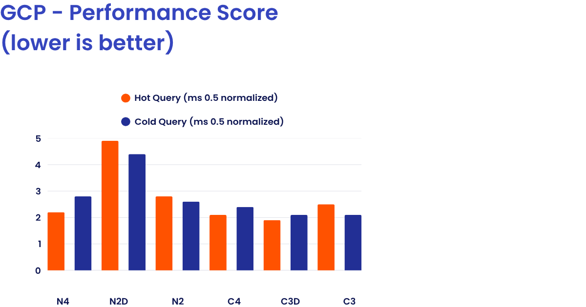 - Performance Score: We calculated a geometric mean of normalized scores, providing a single, balanced performance score for each VM, where a lower score indicates better performance.