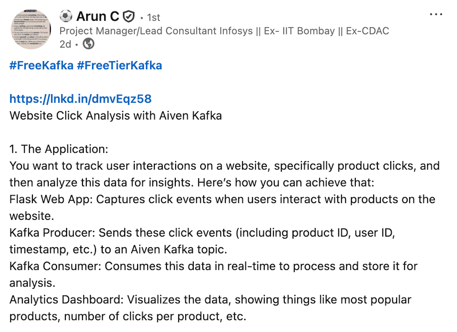 I’m a big fan of personal projects where people build things that are genuinely useful for them, so this reminder app from Velmurugan Manoharan is a perfect example. I particularly like how he highlighted that Kafka can serve as a decoupling layer between third-party applications as well as between your own services.