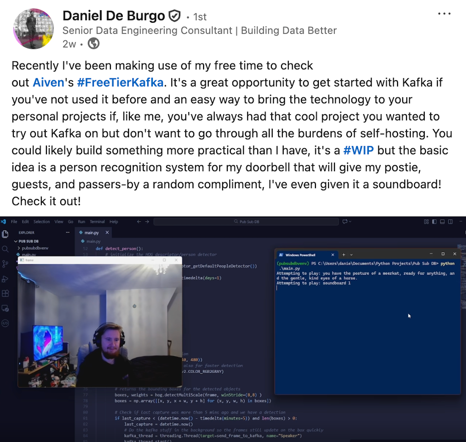 In the last weeks of 2025 we launched our Free Tier for Apache Kafka to give everyone a chance to get hands-on with real-time streaming without worrying about costs. And what better way to kick things off than with some friendly competition? Build something cool, share it with the community, and you could win $5k.