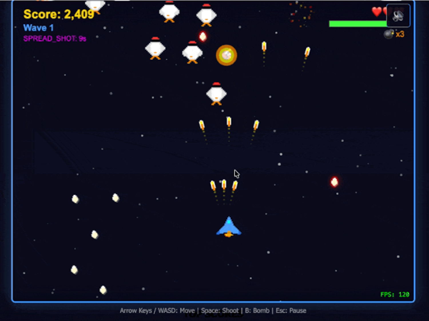 I’m totally blown away by this fully featured, chicken-themed, Space Invaders clone which Yusuf Ganiyu made over the course of a weekend. I made my own space invaders game last year over the course of a few weeks which pales in comparison to this project. Read all about it here on Yusuf’s blog.