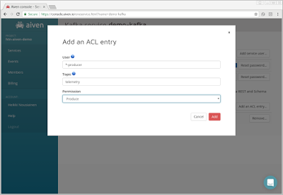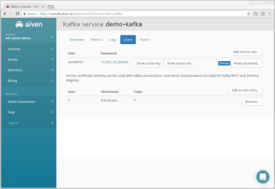 We're happy to announce user and topic level access controls for Aiven for Apache Kafka service. You can now create multiple users with separate access credentials each, and control produce and consumer privileges on user and topic basis.