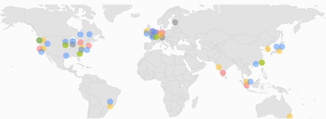 Here's an updated world map showing our supported data center locations. The new Azure regions are the light blue ones: